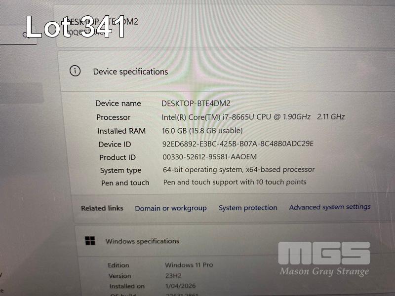 LAPTOP, LENOVO THINKPAD X1 YOGA (4TH GEN), TYPE 20QG, CORE i7 8665U (8TH GEN) @ 1.9GHz, 16GB DDR4 RAM, 512GB NVMe SSD, 14" TOUCHSCREEN (1920x1080), INTEL HD VIDEO, Wi-Fi, BLUETOOTH, STYLUS, WINDOWS 11 PRO INSTALLED (NO USB-C POWER SUPPLY) (NOTE: MARKS ON SCREEN, CASING POOR CONDITION) S/N:PF1VSCXF