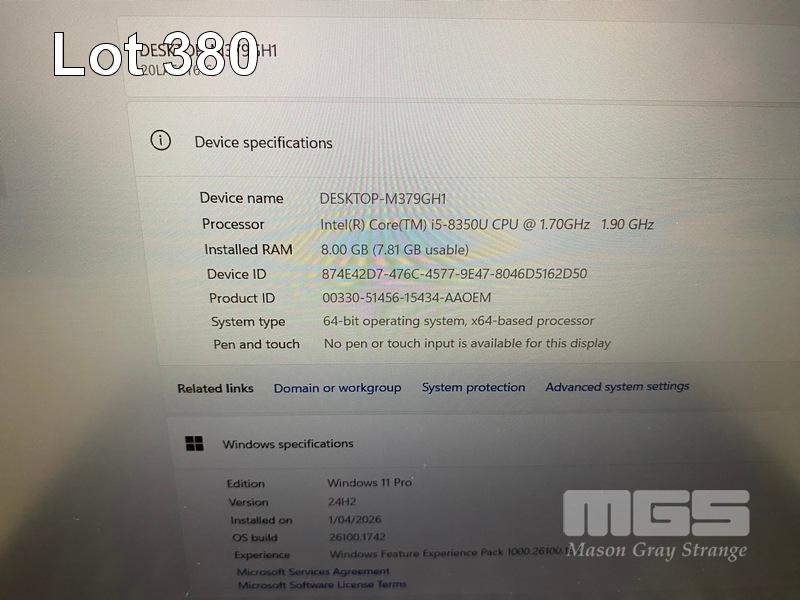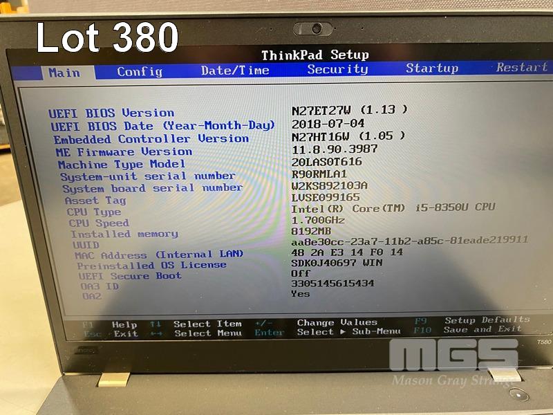 LAPTOP, LENOVO THINKPAD T580, TYPE 20LA, CORE i5 8350U (8TH GEN) @ 1.7GHz, 8GB DDR4 RAM, 256GB NVMe M.2 SSD, 15.6" WIDESCREEN (1920x1080), INTEL UHD GRAPHICS, Wi-Fi, BLUETOOTH, WINDOWS 11 PRO INSTALLED (NO USB-C POWER SUPPLY) (NOTE: MARKS ON SCREEN) S/N:R90RMLA1