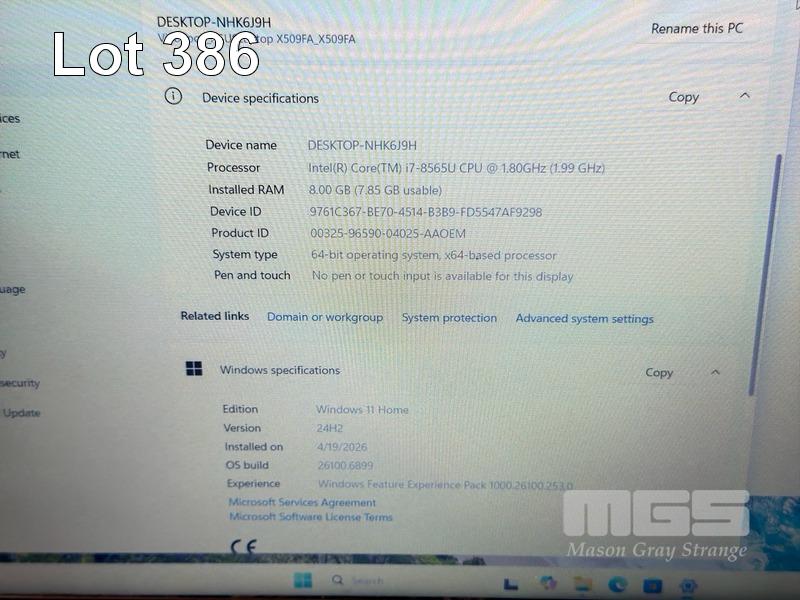 LAPTOP, ASUS VIVOBOOOK X509FA-EJ049T, CORE i7 8565U (8TH GEN) @ 1.8GHz, 8GB DDR4 RAM, 512GB NVMe M.2 SSD, 15.6" WIDESCREEN (1920x1080), INTEL UHD GRAPHICS, Wi-Fi, BLUETOOTH, WINDOWS 11 HOME INSTALLED & POWER SUPPLY (NOTE: MISSING KEY) S/N:K8N0CX09436034G