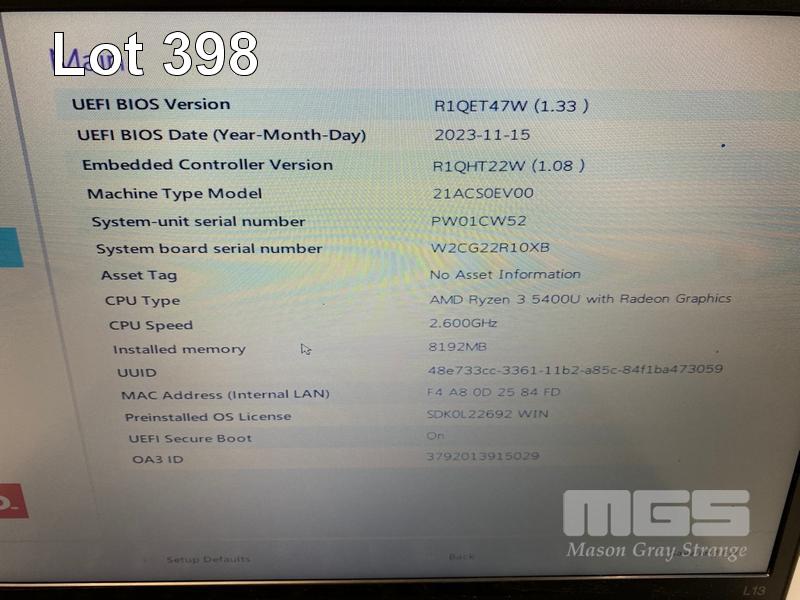 LAPTOP, LENOVO THINKPAD L13 Gen 2, TYPE 21AC, AMD RYZEN 3 5400U @ 2.6GHz, 8GB DDR4 RAM, 256GB NVMe M.2 SSD, 13.3" WIDESCREEN (1366x768), Wi-Fi, BLUETOOTH, WINDOWS 11 PRO EDUCATION INSTALLED & USB-C POWER SUPPLY (NOTE: CRACK LINE ON CASING) S/N:PW01CW52