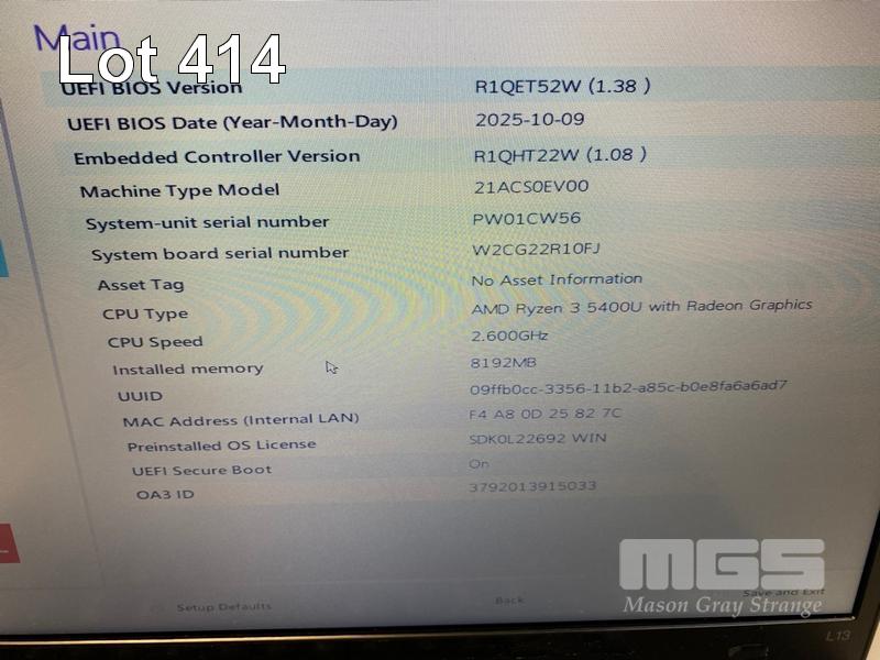 LAPTOP, LENOVO THINKPAD L13 Gen 2, TYPE 21AC, AMD RYZEN 3 5400U @ 2.6GHz, 8GB DDR4 RAM, 256GB NVMe M.2 SSD, 13.3" WIDESCREEN (1366x768), Wi-Fi, BLUETOOTH, WINDOWS 11 PRO EDUCATION INSTALLED & USB-C POWER SUPPLY (NOTE: CRACK LINE ON CASING, SCREEN COVER LOOSE) S/N:PW01CW56