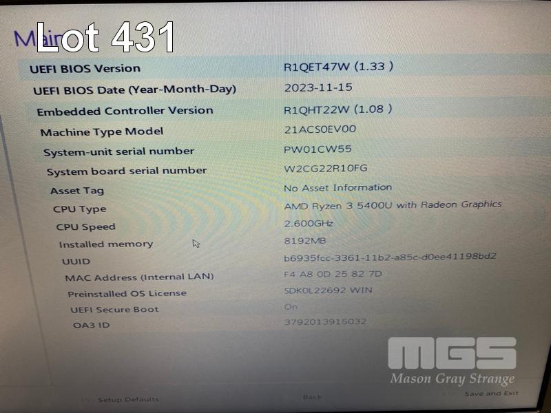 LAPTOP, LENOVO THINKPAD L13 Gen 2, TYPE 21AC, AMD RYZEN 3 5400U @ 2.6GHz, 8GB DDR4 RAM, 256GB NVMe M.2 SSD, 13.3" WIDESCREEN (1366x768), Wi-Fi, BLUETOOTH, WINDOWS 11 PRO EDUCATION INSTALLED & USB-C POWER SUPPLY (NOTE: CRACK LINE ON CASING, SCREEN COVER LOOSE) S/N:PW01CW5S