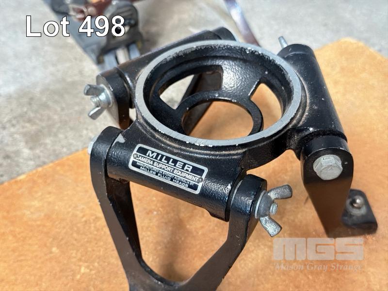 VINTAGE WOODEN MILLER TRIPOD, FLUID HEAD & HI HAT