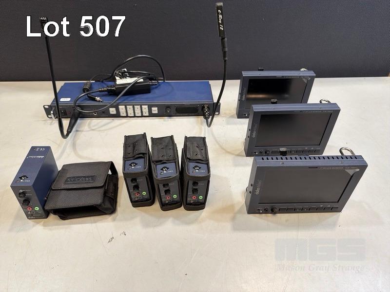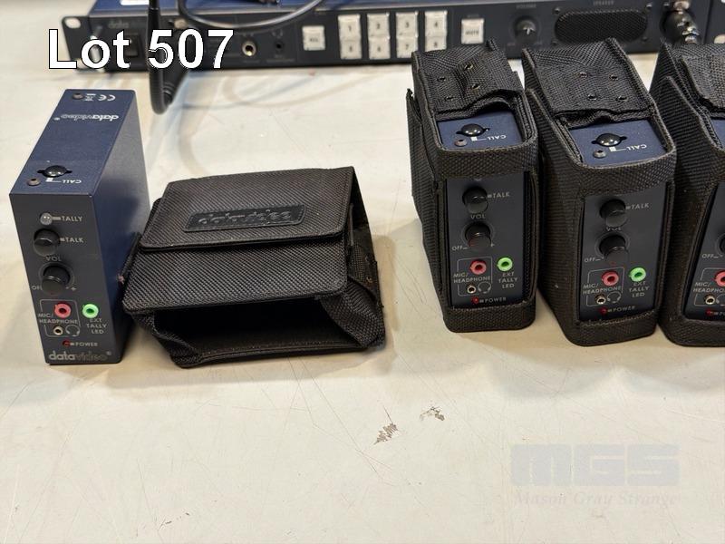 DATAVIDEO 8 WAY INTERCOM SYSTEM ITC-100 WITH - 4 x DATAVIDEO BELT PACKS - 3 x DATAVIDEO 7" LCD MONITORS, TLM-700HD (NO CABLES, NO BATTERIES)