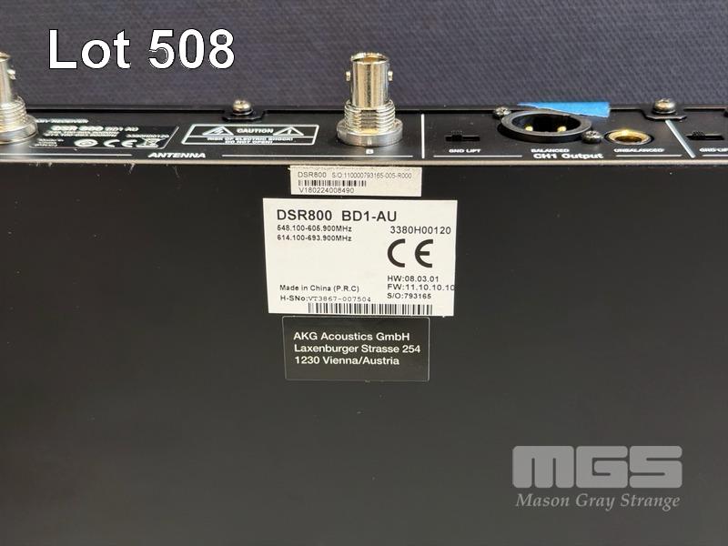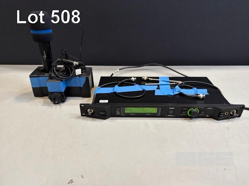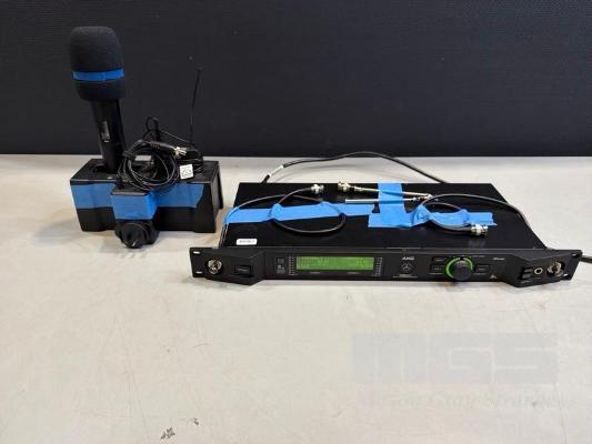 AKG DSR800 DIGITAL WIRELESS STATIONARY RECEIVER WITH 1 x AKG DHT800 HANDHELD MICROPHONE, 1 x AKG DPT800 BODYPACK TRANSMITTER, 1 x LAPEL MICROPHONE, 1 x AKG CU800 CHARGING UNIT & 1 x POWER SUPPLY S/N:V180224008490