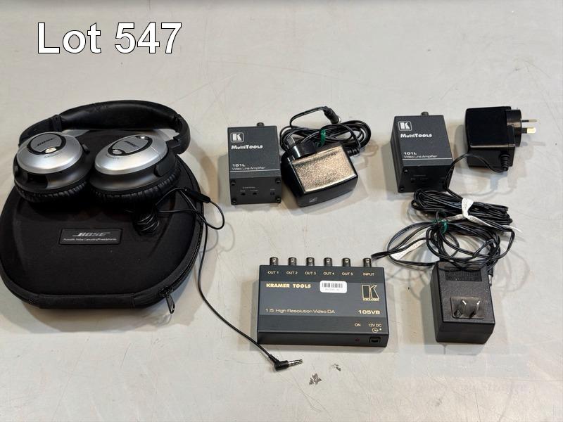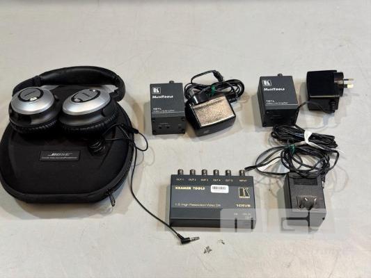 KRAMER TOOLS 105VB 1:5 HIGH RESOLUTION VIDEO DA, 2 x KRAMER MULTITOOLS 101L VIDEO LINE AMPLIFIERS, BOSE COMFORT 15 WIRED NOISE CANCELLING HEADPHONES