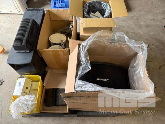 1 x PALLET LOT ASST BOSE AUDIO EQUIPMENT, SPEAKERS, CUBE SPEAKERS, CEILING SPEAKERS, MOUNT KITS, AMP, ETC