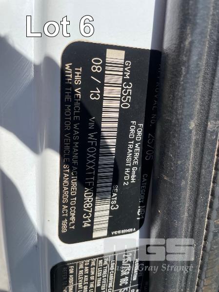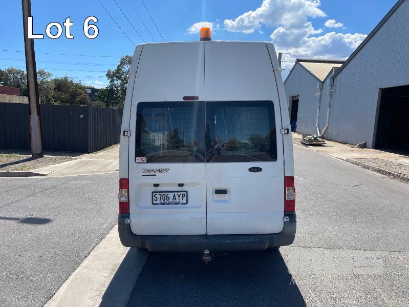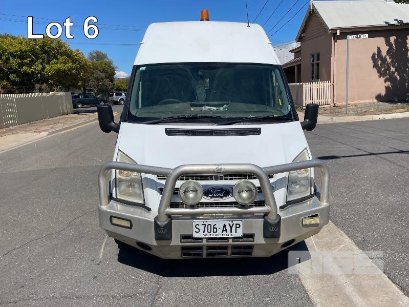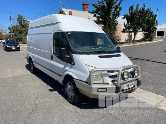2013 FORD VM MY12 UPDATE HIGH ROOF TRANSIT VAN RWD REG: S706AYP VIN: WF0XXXTTFXDR87314 ODO: 135,100kms SHOWING DIESEL, 6 SPEED MANUAL TRANSMISSION, 2.2L DIESEL TURBO F/INJ DT4, 3 DOORS, 3 SEAT, RWD AIR CON, BULL BAR (NO PAPERS, WITH 1 KEY/S, NO OWNER'S MANUAL, NO SERVICE BOOKS)