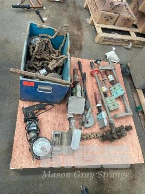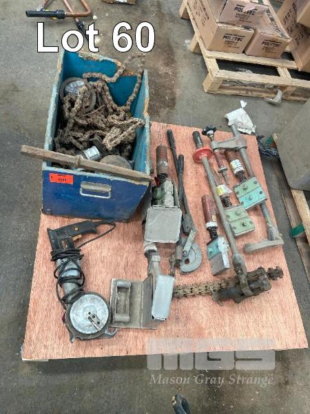 ASSORTED TOOLS, PIPE CUTTER, 240V, TUBE BENDERS, CHAIN CLAMPS, 1 x PALLET