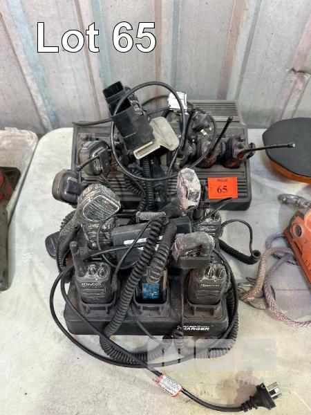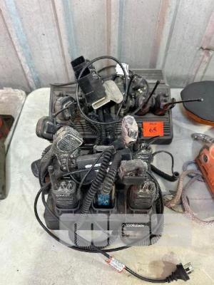 2 x SETS UHF RADIOS, MOTOROLA & KENWOOD & 2 x BASE STATION CHARGERS