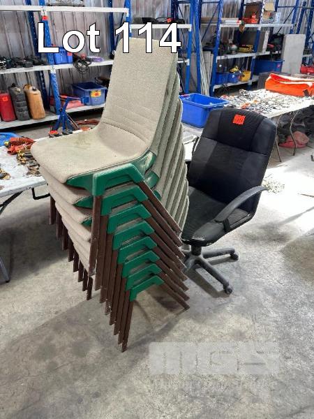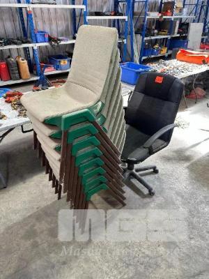 8 x STACKABLE CHAIRS, 2 x GASLIFT OFFICE CHAIRS