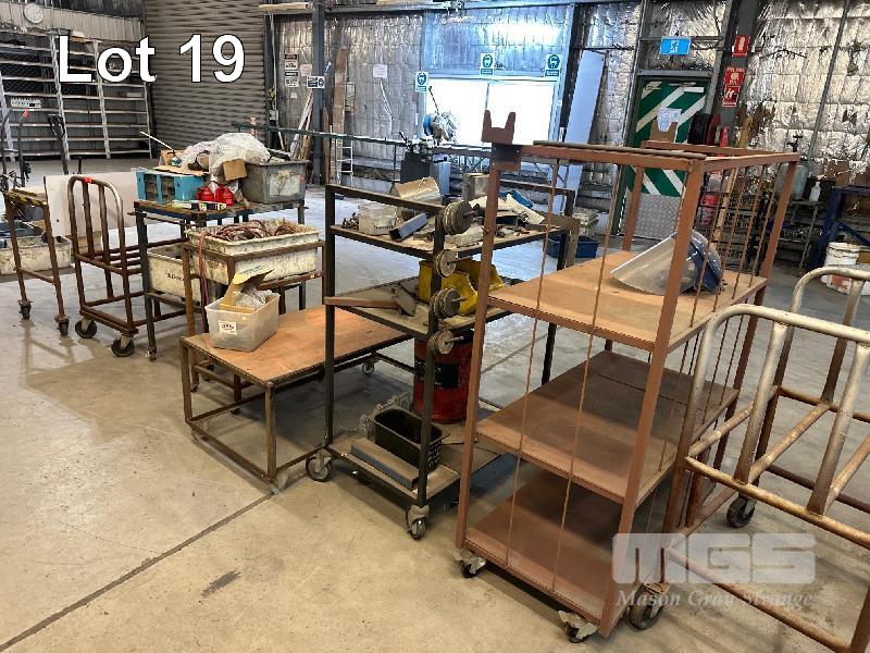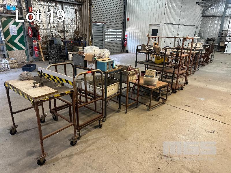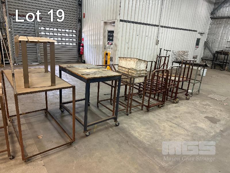 19 x ASSORTED STEEL TROLLEYS & STANDS