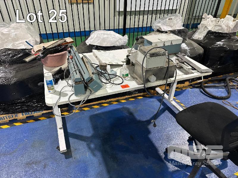 MOBILE WORKSTATION, ADJUSTABLE HEIGHT WITH 3 x SEALERS & ROLLER CUTTER