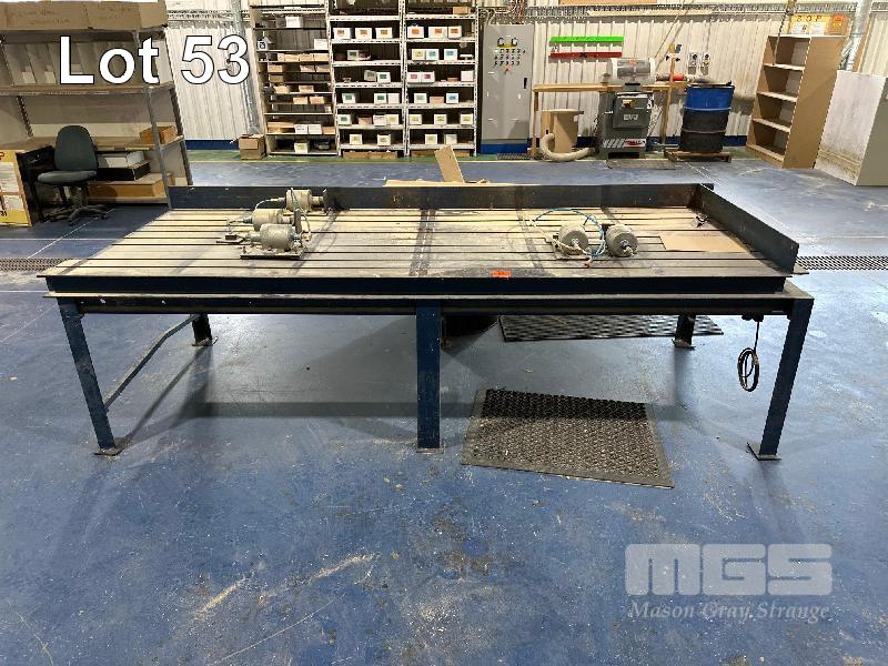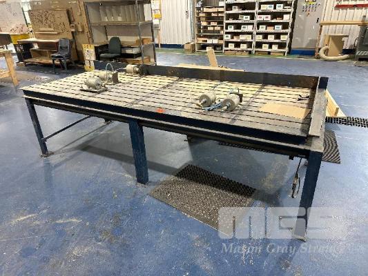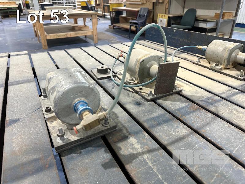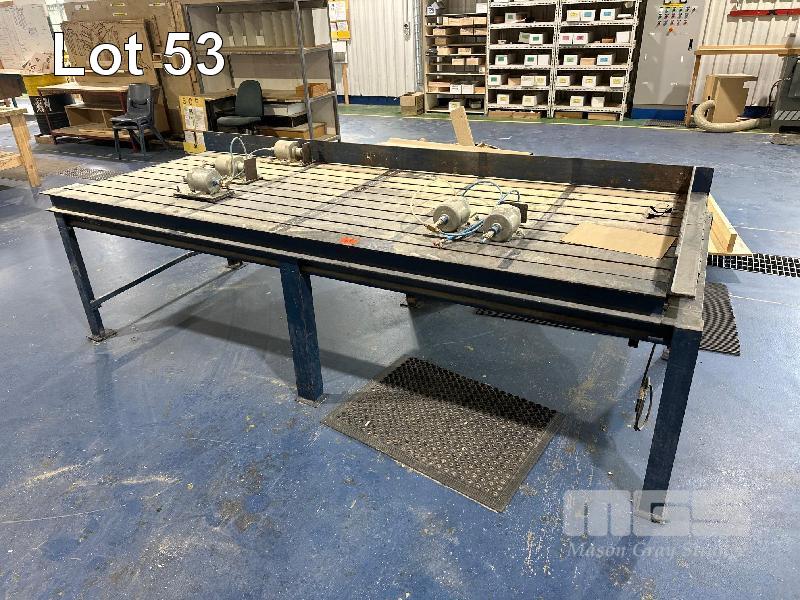 HEAVY DUTY STEEL SLOTTED WORK BENCH WITH 5 x PNEUMATIC CLAMPS
