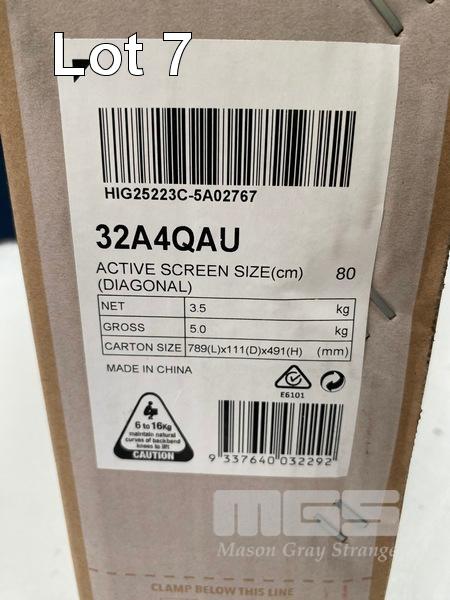 TV, HISENSE 32-INCH A4QAU HD SMART, 32A4QAU (RRP $345) (BOXED) (SUBJECT TO INSURANCE CLAIM) S/N:HIG25223C-5A02767