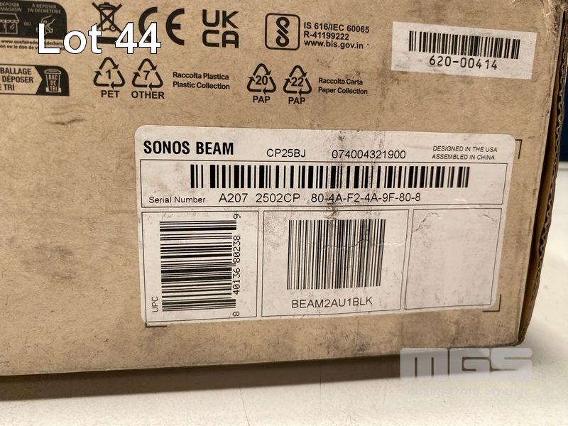 SOUNDBAR, SONOS BEAM (GEN 2) SMART - BLACK, BEAM2AU1BLK (RRP $795) (BOXED) (SUBJECT TO INSURANCE CLAIM)