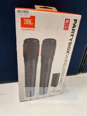 MICROPHONE, JBL PARTYBOX WIRELESS DIGITAL MIC - 2 PACK, JBLPBWIRELESMIC (RRP $175) (BOXED) (SUBJECT TO INSURANCE CLAIM)