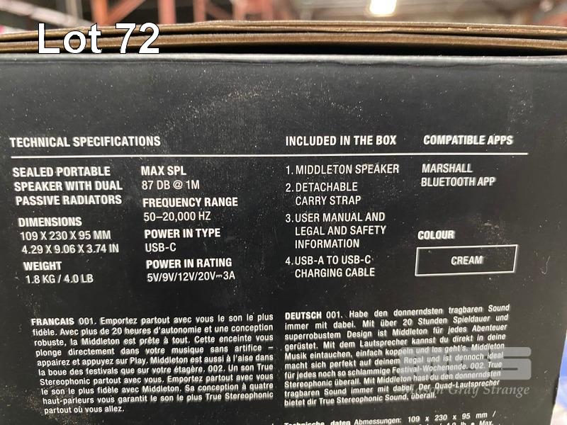 SPEAKER, MARSHALL MIDDLETON PORTABLE BLUETOOTH, CREAM (RRP $495) (BOXED) (SUBJECT TO INSURANCE CLAIM) S/N:73400553E423A8E0232050