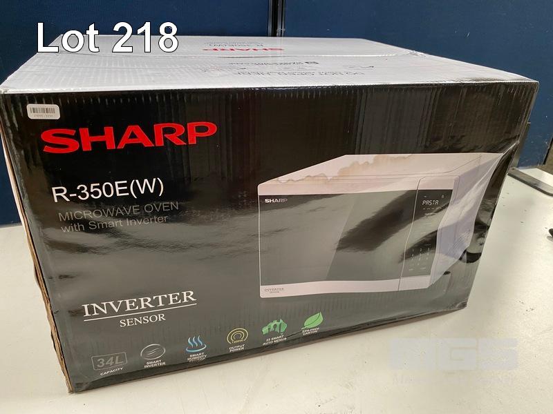 MICROWAVE, SHARP 34L INVERTER WHITE, R-350E (RRP $279) (BOXED) (SUBJECT TO INSURANCE CLAIM) S/N:509411437