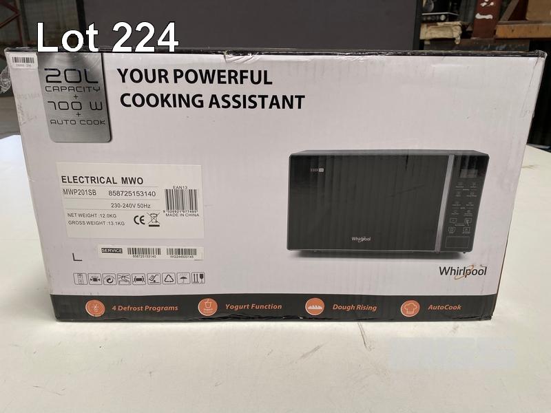MICROWAVE, WHIRLPOOL 20L SOLO - BLACK, MWP201SB (RRP $129) (BOXED) (SUBJECT TO INSURANCE CLAIM)