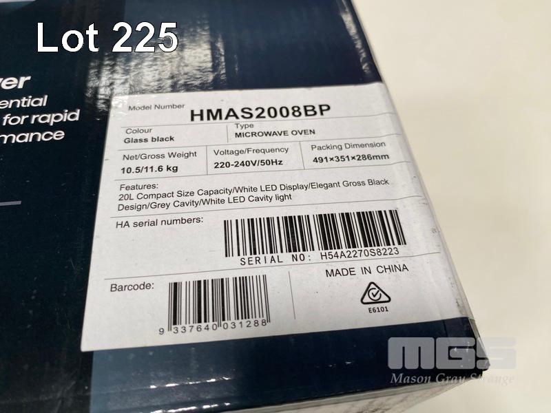 MICROWAVE, HISENSE 20L 800W SOLO, HMAS2008BP (RRP $149) (BOXED) (SUBJECT TO INSURANCE CLAIM) S/N:H54A2270S8223