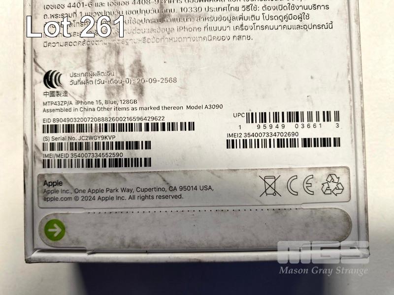 SMARTPHONE, APPLE iPHONE 15 128GB - BLUE, MTP43ZP/A (RRP $1,097) (BOXED) (SUBJECT TO INSURANCE CLAIM) S/N:SJC2WGY9KVP