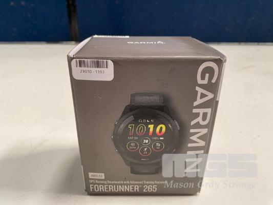 SMART WATCH, GARMIN FORERUNNER 265 - BLACK BEZEL AND CASE WITH BLACK/POWDER GREY SILICONE BAND