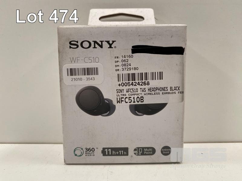 EARBUDS, SONY WF-C510 COMPACT TRULY WIRELESS - BLACK, WFC510B (RRP $78) (BOXED) (SUBJECT TO INSURANCE CLAIM)