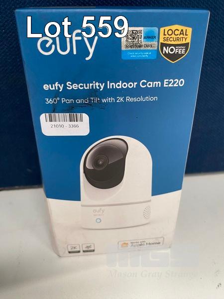 SECURITY CAMERA, EUFY SECURITY INDOOR CAM E220 2K PAN AND TILT, T8410C24 (RRP $138) (BOXED) (SUBJECT TO INSURANCE CLAIM)