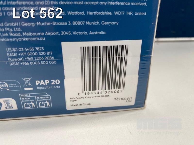 VIDEO DOORBELL, EUFY SECURITY BATTERY POWERED 2K S220 ADD-ON, T8210CW1 (RRP $278) (BOXED) (SUBJECT TO INSURANCE CLAIM)