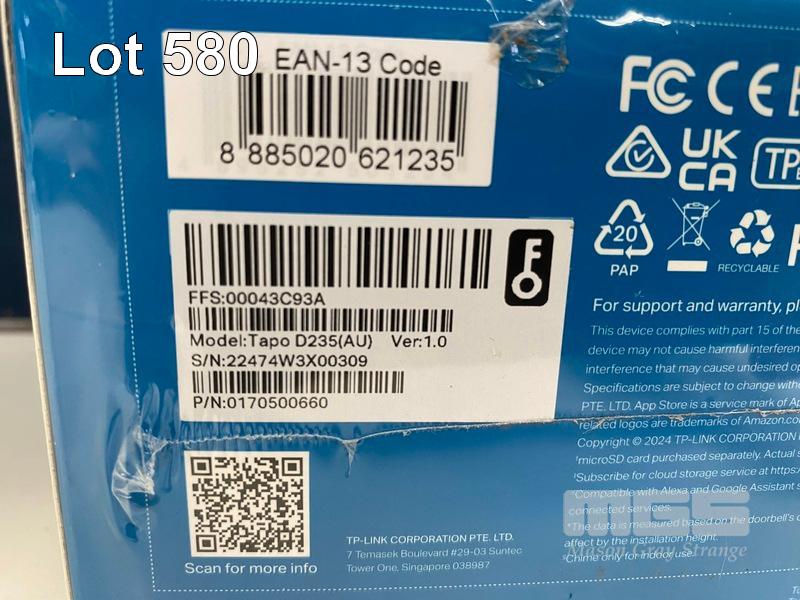 DOORBELL CAMERA, TP-LINK TAPO D235 VIDEO, TAPO-D235 (RRP $248) (BOXED) (SUBJECT TO INSURANCE CLAIM)