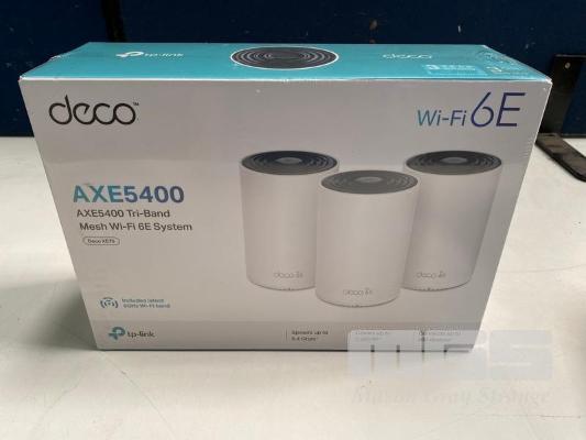 MESH WIFI SYSTEM, TP-LINK DECO AXE5400 TRI-BAND 6E - 3 PACK, DECO-XE75 (RRP $698) (BOXED) (SUBJECT TO INSURANCE CLAIM)