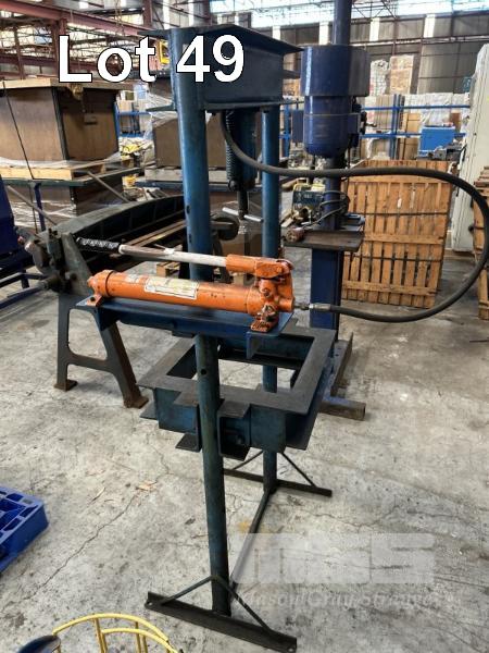 WORKSHOP PRESS, HYDRAULIC ADJUSTABLE BASE, 570mm INTERNAL WIDTH MANUAL PUMP, 10 TONNE SINGLE RAM