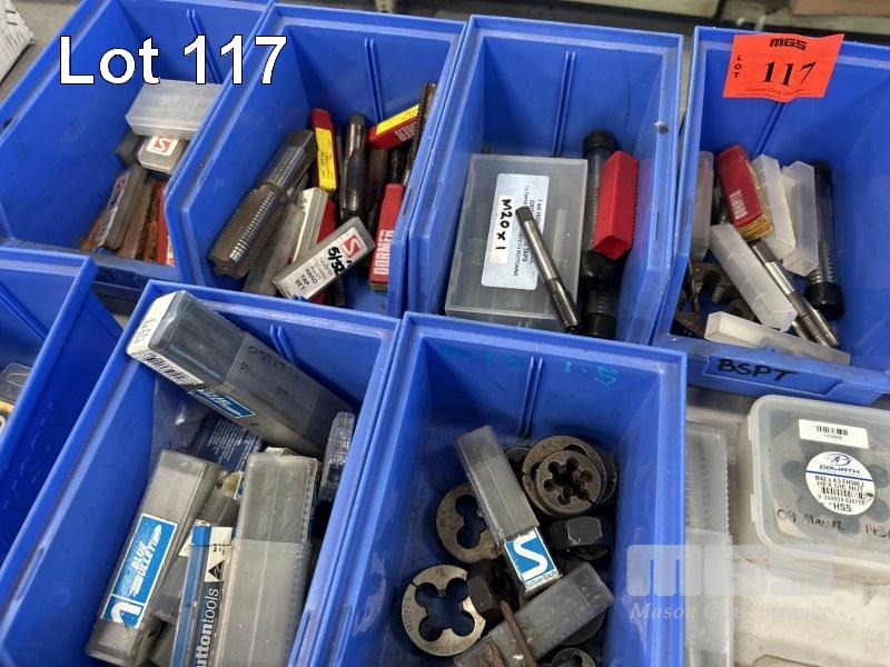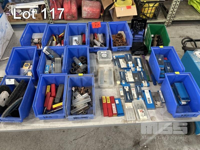 LARGE QUANTITY DRILLS, TAPS, DIES, REAMERS, ETC, ASSORTED SIZES