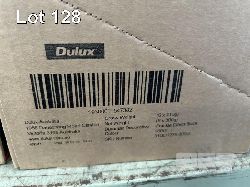 SPRAY PAINT, DULUX, DURAMAX EFFECTS, DECORATIVE, 300gm CANS 24 x CANS CRACKLE WHITE, 24 x CANS, MARBLE EFFECT BLACK & 24 x CANS CRACKLE BLACK 12 x BOXES