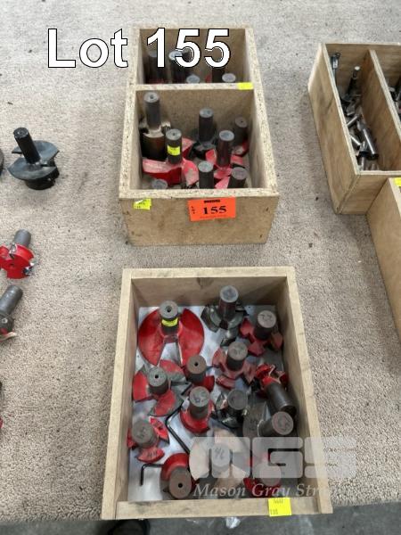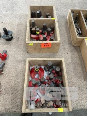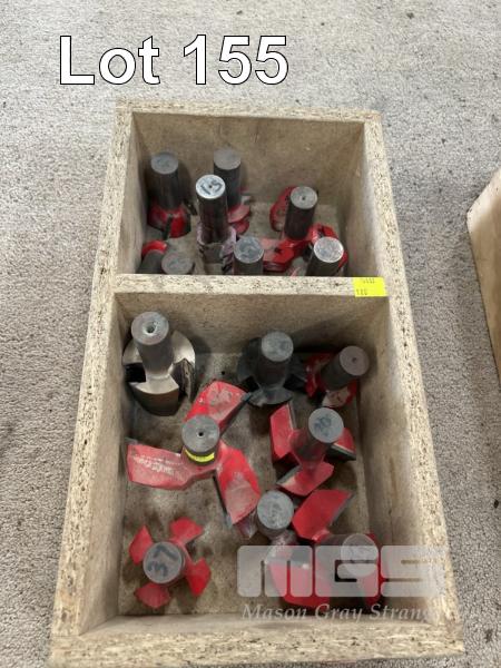 30 (APPROX) x WOODWORKING MOULDER CUTTING BITS, ASSORTED TYPES & SIZES 2 x TRAYS