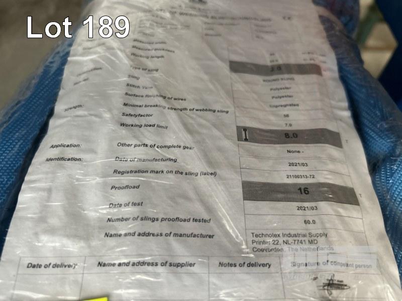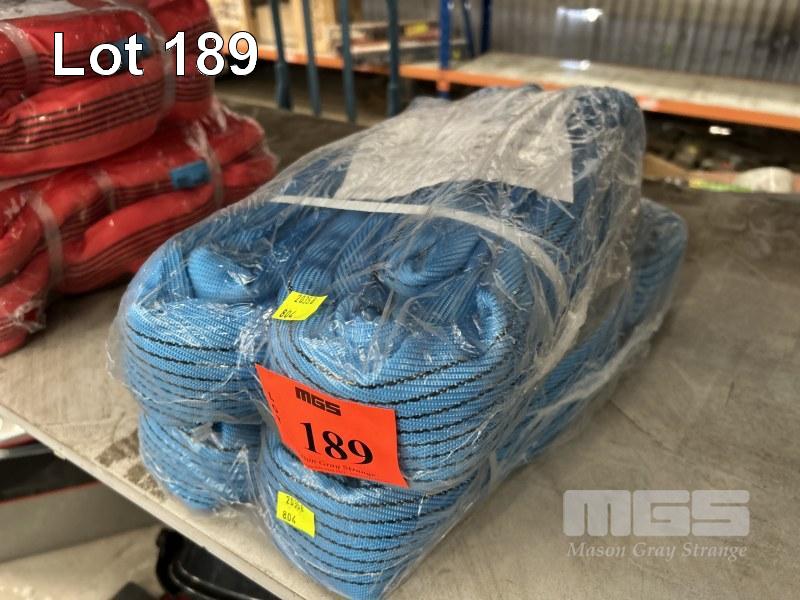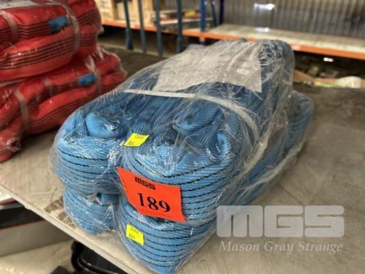 2 x LIFTING SLINGS, NOBLE & SONS 8 TONNE x 2m BLUE AS NEW