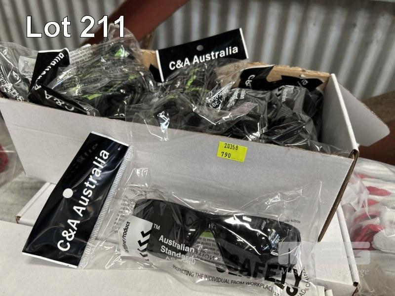 24 x PAIRS, SUEDE GLOVES, FRONTIER, SWAGGY SIZE: SMALL (2 x PACKS) & 36 x PAIRS SAFETY GLASSES, C&A AUSTRALIA, SMOKE 3 x BOXES AS NEW