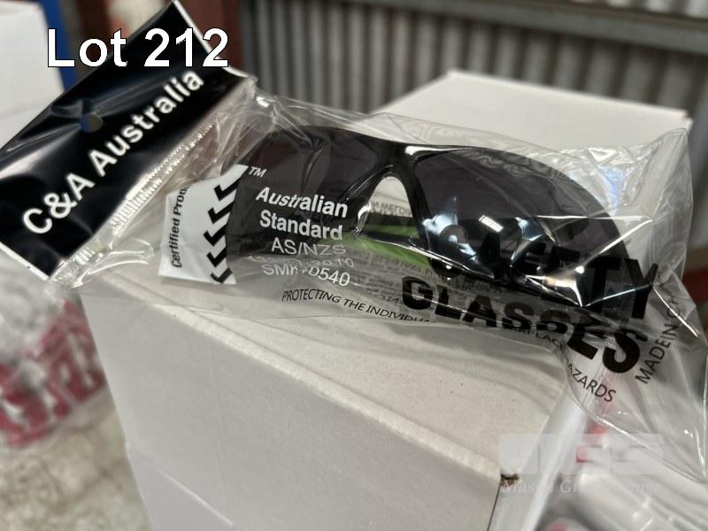 24 x PAIRS, SUEDE GLOVES, FRONTIER, SWAGGY SIZE: SMALL (2 x PACKS) & 36 x PAIRS SAFETY GLASSES, C&A AUSTRALIA, SMOKE 3 x BOXES AS NEW