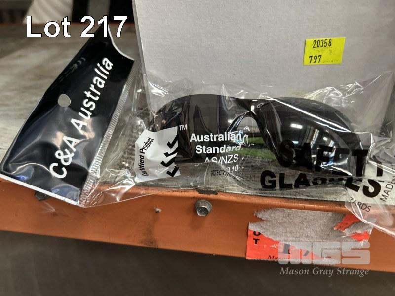 42 x PAIRS, ASSORTED LEATHER & SUEDE GLOVES, PRO SAFE, WARRIOR 250 & 500 SIZE: XL (4 x PACKS) & 48 x PAIRS SAFETY GLASSES, C&A AUSTRALIA, SMOKE 4 x BOXES AS NEW