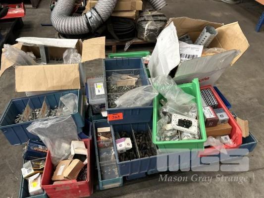 FASTENERS, NUTS, BOLTS, WASHERS, FIXTURES, ETC, ASSORTED SIZES INCLUDING STAINLESS STEEL, GALV, MILD STEEL, 1 x PALLET