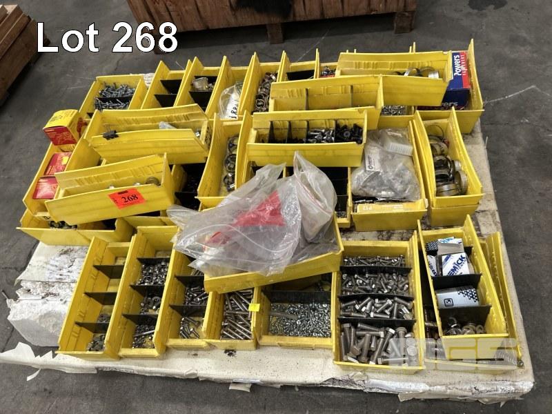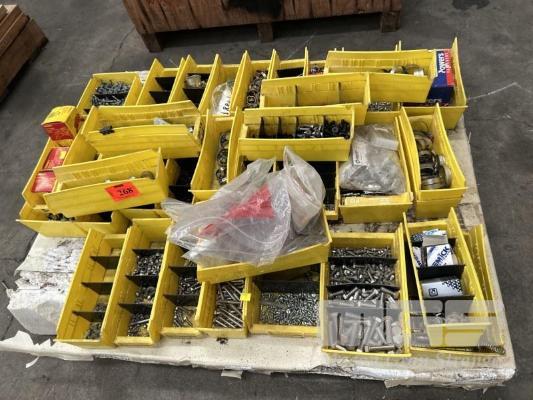 FASTENERS, NUTS & BOLTS, RIVETS, ETC IN PLASTIC PARTS DRAWERS 1 x PALLET