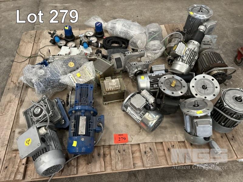 13 x ELEC MOTORS INCLUDING, CARPANELLI, .25kw, 4 x REDUCTION DRIVE UNITS WITH MOTORS, TRANSFORMERS, PNEUMATIC RAMS & REGULATORS, BOC 8000, ETC