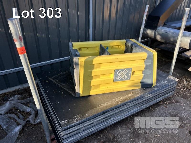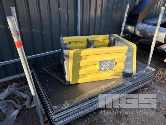 15 x PLYWOOD SHEETS, SUIT CONCRETE FORMWORK, 1800 x 1200mm WITH SAFETY BOX STORAGE UNIT INCLUDING STILLAGE