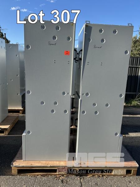 2 x HIGH VOLTAGE ELECTRICAL CABINETS FITTED WITH LARGE DIAMETER CABLE CONNECTORS,