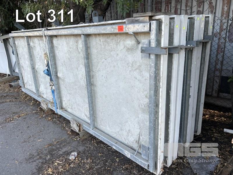6 x HEAVY DUTY PANELS, CEMENT FIBRE EPOXYSHEET WITH GALV STEEL FRAMEWORK 4000 x 1480 x 120mm THICK BOLT TOGETHER MOUNTED IN 2 x STILLAGE FRAMES