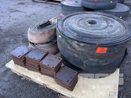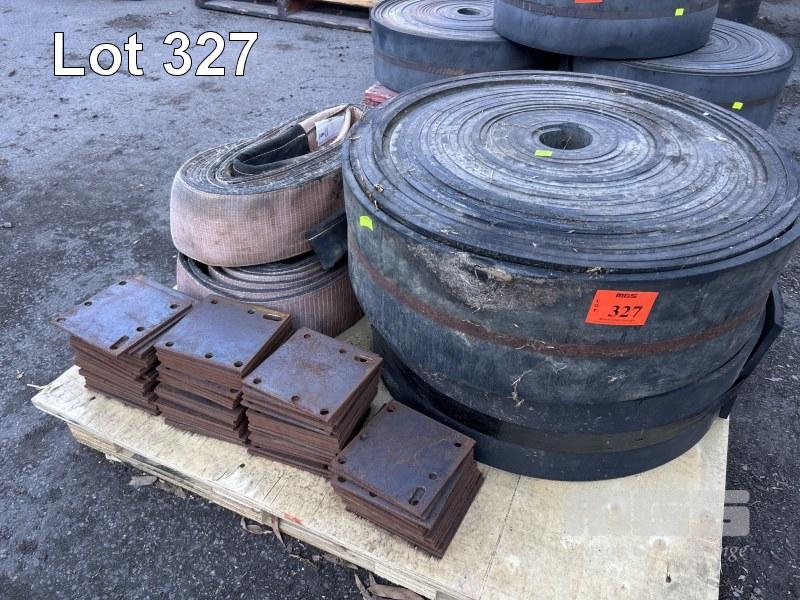2 x RUBBER ROLLS, 250mm (W) x 15mm THICK 2 x LIFTING SLINGS, 6 TONNE & STEEL BOLT PLATE, 150 x 160 x 5mm 1 x PALLET