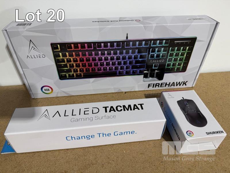 - ALLIED FIREHAWK RGB MECHANICAL KEYBOARD, SHURIGEN RGB MOUSE, TACMAT GAMING SURFACE