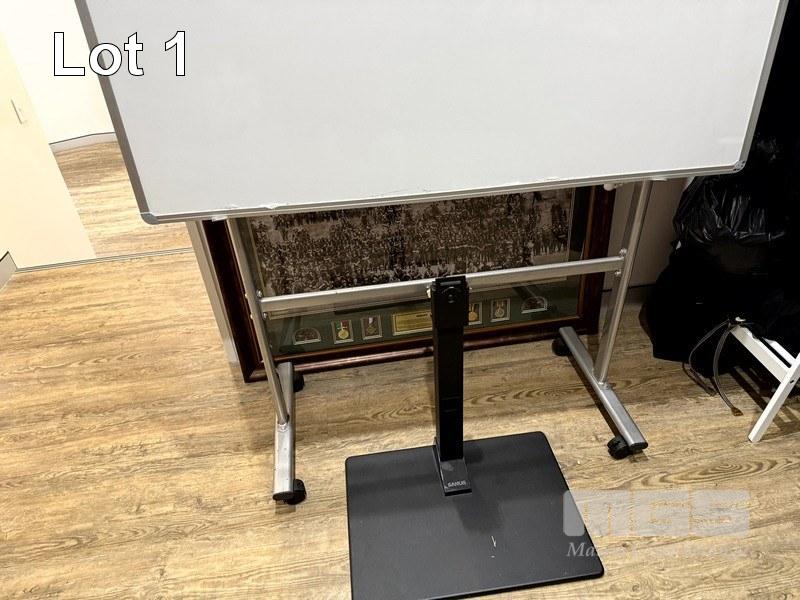 FRAMED ALUMINIUM OFFICE WHITEBOARD ON STAND & SANUS TELEVISION STAND