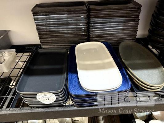 38 x GREY RECTANGULAR PLATES, 6 x MATT BLACK RECTANGULAR PLATES, 2 x WHITE RECTANGULAR PLATES, 6 x BLUE RECTANGULAR PLATES, 3 x OLIVE OVAL PLATES, 4 x BLACK RECTANGULAR PLATES